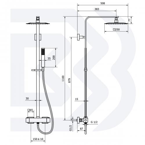 Miscelatore esterno doccia con colonna e soffione 250X250